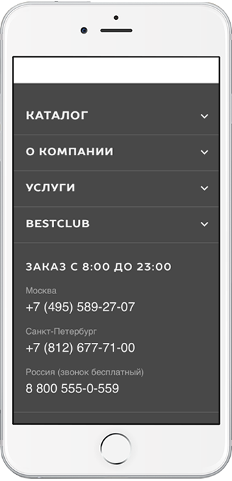 Посетителей привлекает не только удобство работы с сайтом, но также выгодные цены и программа лояльности. Информация о них должна быть размещена на видном участке мобильного сайта.
