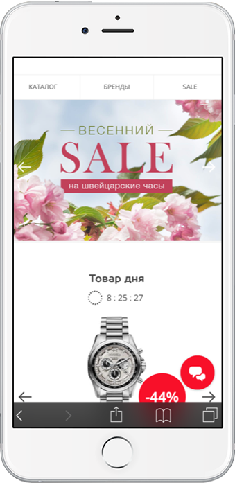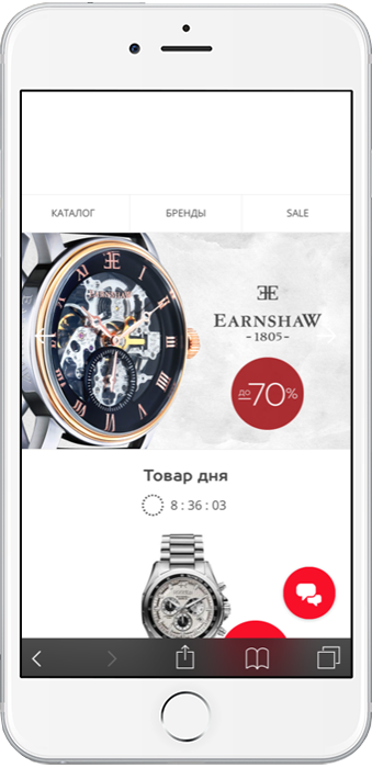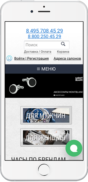 Рассмотрим более подробно основные требования к организации мобильного сайта для увеличения конверсии. Для наглядности, команда Fteam.ru проанализировала мобильные сайты лидеров российского часового рынка. Наши специалисты протестировали сайты на трех устройствах: iPhone6, iPhone4s (для проверки адаптации сайта на более мелком экране), Huawei P10 (для проверки одинаково корректной работы, как на iOs, так и на Android).
