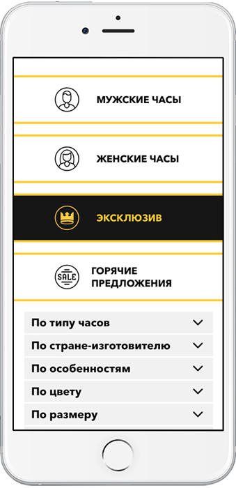 Для экономии времени клиентов нужно тщательно проработать навигацию и ее дизайн: разделить часы на группы (мужские, женские, детские, спортивные и т.д.), создать возможность поиска по разным критериям (бренд/кварцевый или механический калибр/спортивные или классические часы) и их сочетаниям (Casio+спортивные+женские), также уточнить цвет и материалы. Наличие подробного и удобно расположенного списка критериев поиска уменьшит количество результатов и позволит клиенту быстро подобрать необходимую модель.